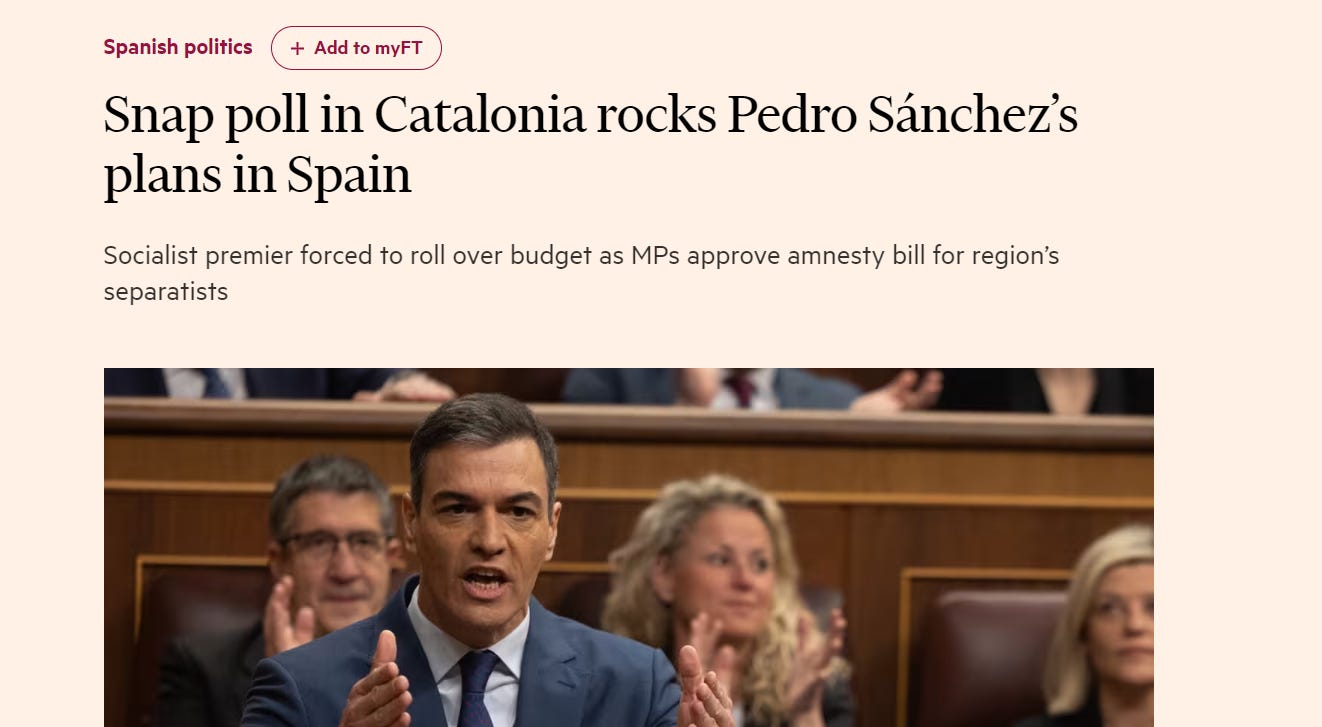 Since I wrote this yesterday it’s become clear that even if Sánchez didn’t encourage the early election in Catalonia he certainly assented to it. He has allies on both side of the Hard Rock controversy and could have chosen to lean on one of them to cede so as to allow the Catalan budget to pass. That he didn’t suggests that he’s relaxed about the May election. Thus the catastrophist framing in this FT story is arrant nonsense.